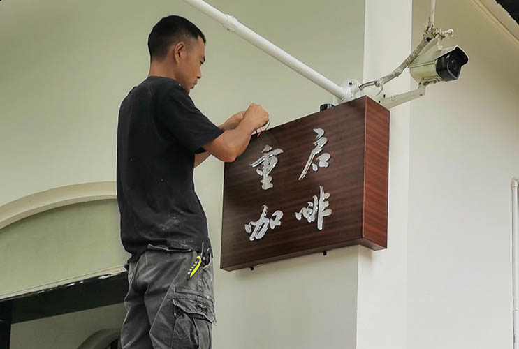 作為咖啡店鋪的招牌設計制作,可以采用長沙鏤空燈箱定制